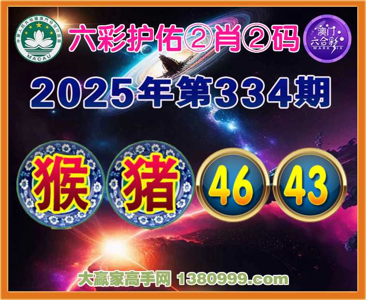 334期: 🪢『六彩护佑』 🪢②肖②码🪢【猴猪】【46.43】开:猴46准
