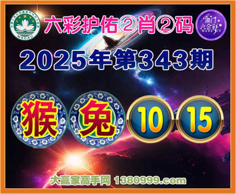 343期: 🪢『六彩护佑』 🪢②肖②码🪢【猴兔】【10.15】开:龙38错