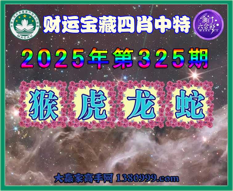 325期: ☺️『财运宝藏』 ☺️四肖中特☺️【猴.虎.龙.蛇】开:虎04准