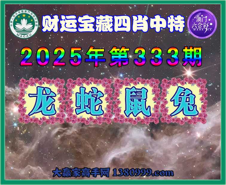 333期: ☺️『财运宝藏』 ☺️四肖中特☺️【龙.蛇.鼠.兔】开:鼠06准