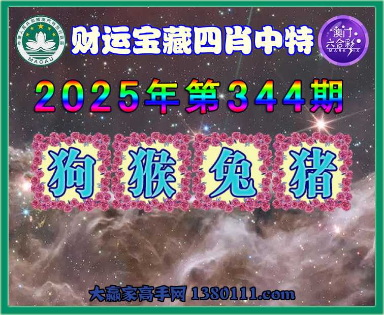 344期: ☺️『财运宝藏』 ☺️四肖中特☺️【狗.猴.兔.猪】开:兔27准