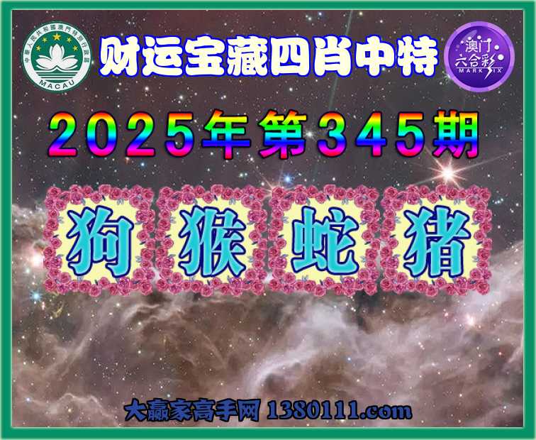 345期: ☺️『财运宝藏』 ☺️四肖中特☺️【狗.猴.蛇.猪】开:马24错
