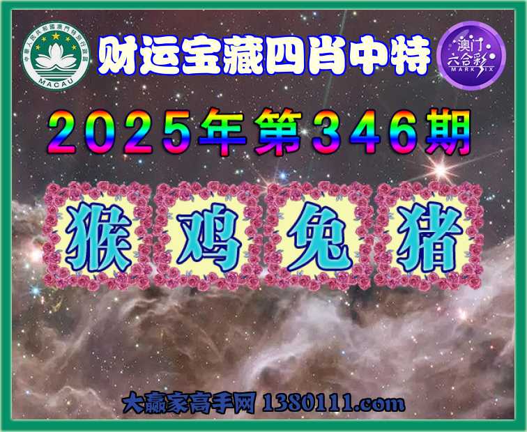 346期: ☺️『财运宝藏』 ☺️四肖中特☺️【猴.鸡.兔.猪】开:兔03准
