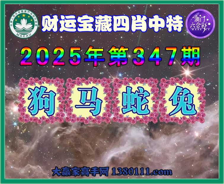 347期: ☺️『财运宝藏』 ☺️四肖中特☺️【狗.马.蛇.兔】开:蛇13准