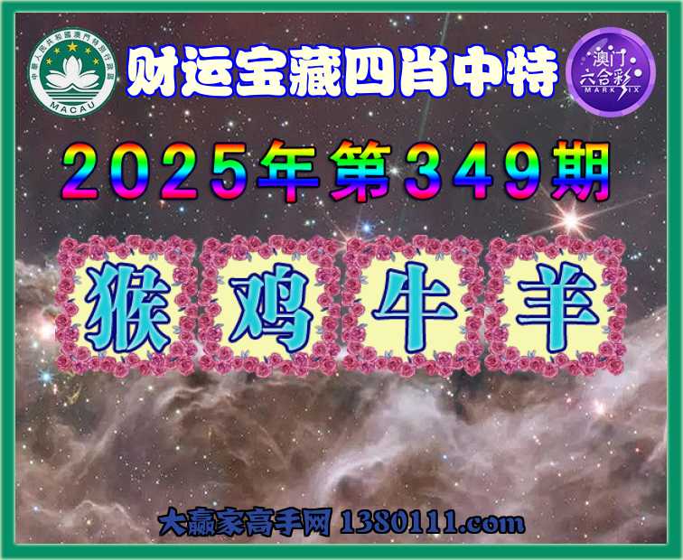 349期: ☺️『财运宝藏』 ☺️四肖中特☺️【猴.鸡.牛.羊】开:猴22准