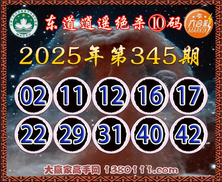 345期:『东道逍遥』 💎绝杀⑩码💎开:马24准上榜高手