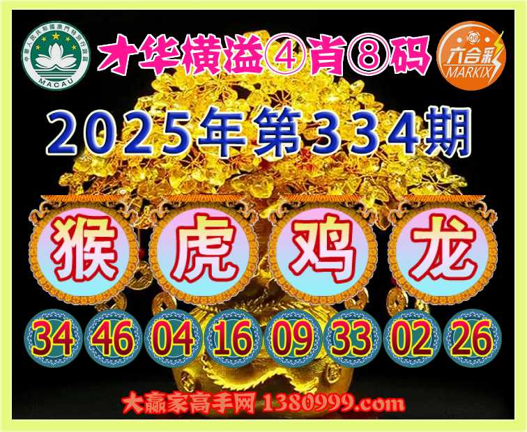 334期:【才华横溢】 🍖④肖⑧码🍖【猴虎鸡龙】开:猴46准