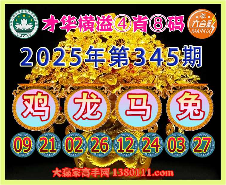 345期:【才华横溢】 🍖④肖⑧码🍖【鸡龙马兔】开:马24准